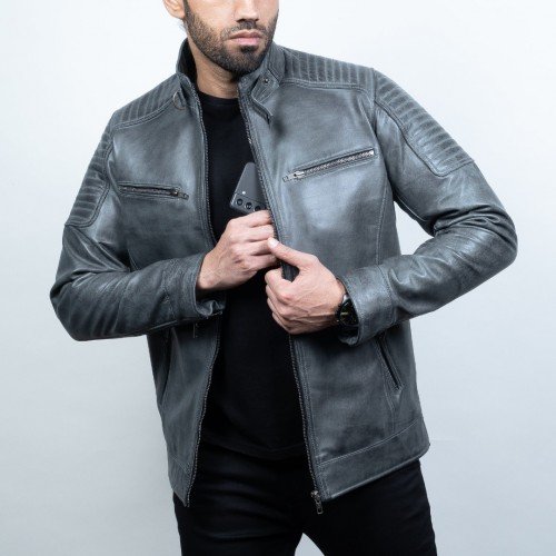 BIKER GREY LEATHER JACKET  BIKER GREY LEATHER JACKET  BIKER GREY LEATHER JACKET  BIKER GREY LEATHER JACKET