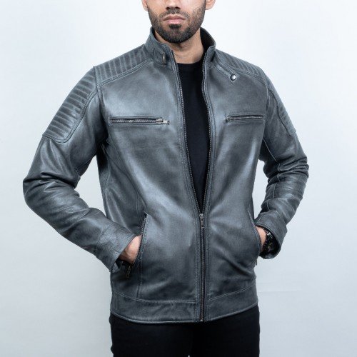 BIKER GREY LEATHER JACKET  BIKER GREY LEATHER JACKET