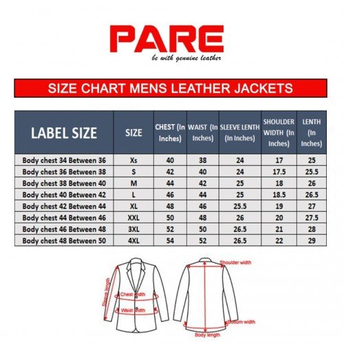 • NOTE : We suggest you Above Size chart are for Ready Jackets. Please select your size carefully. Jacket Chest size must be 4 inches bigger than your actual body Chest size.