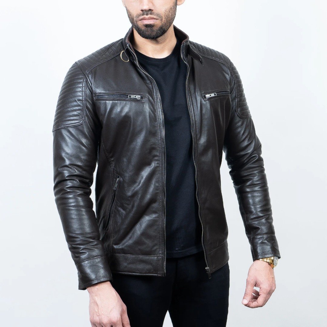 Fabric:LeatherColor:Brown Sleeve:Full SleeveType:Biker Jacket Fit:Regular Fit Pattern:Solid Pocket:Double Pocket Neck Shape:Notched Lapel Length:Regular Front Opening:Full Zip Wear:OutdoorsStack up your style against the...